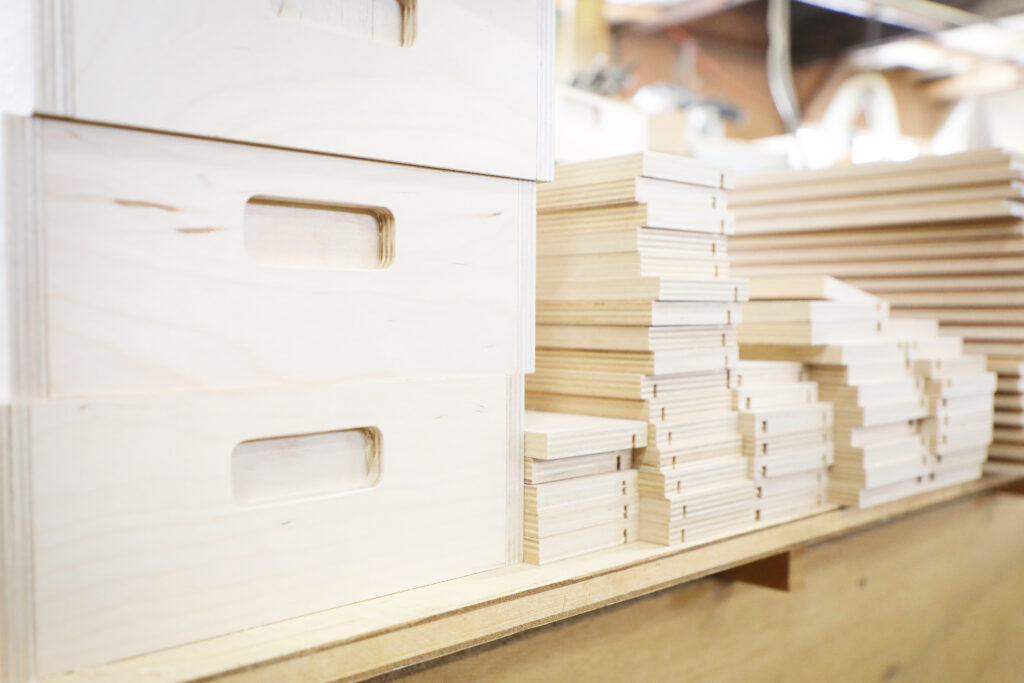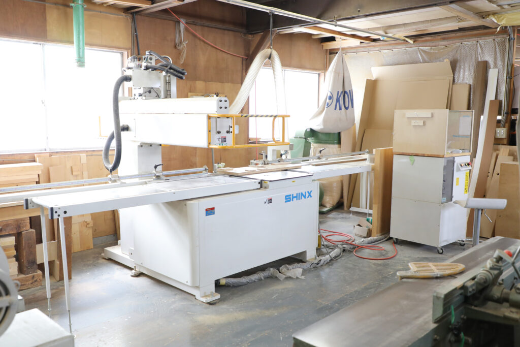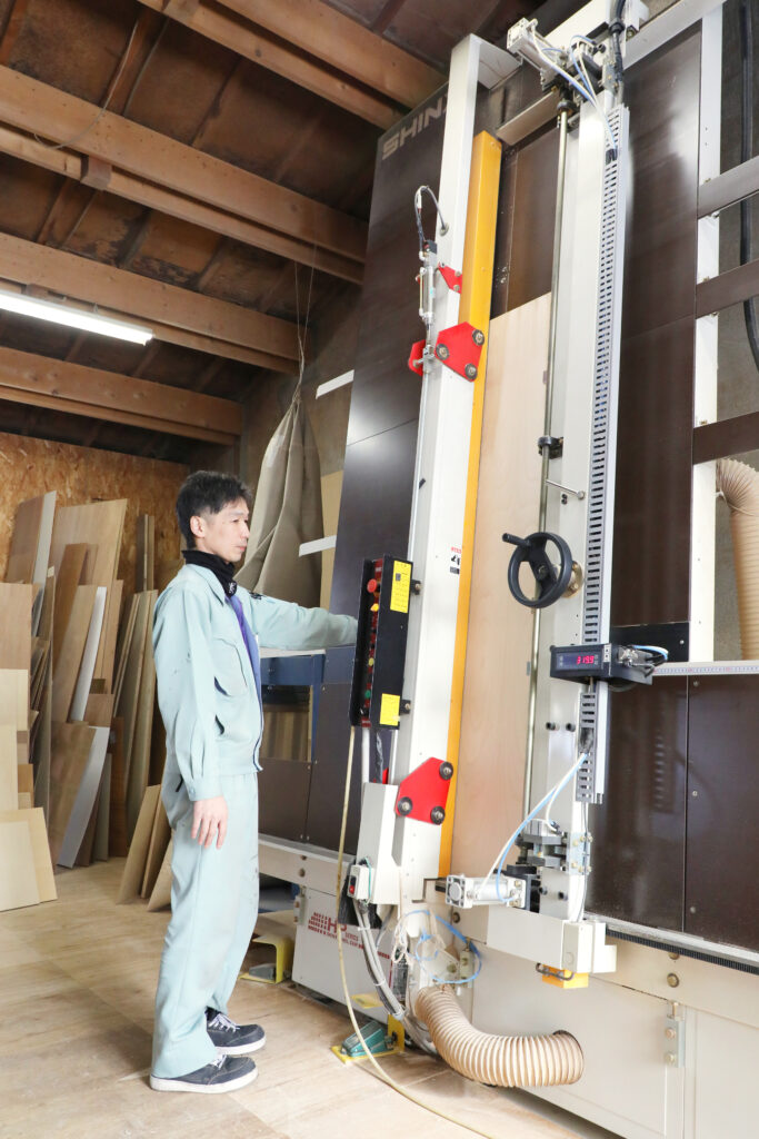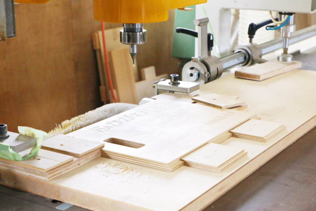 - 工場作業 切断機、昇降板、ルーター、仕上げ機を使用した加工作業